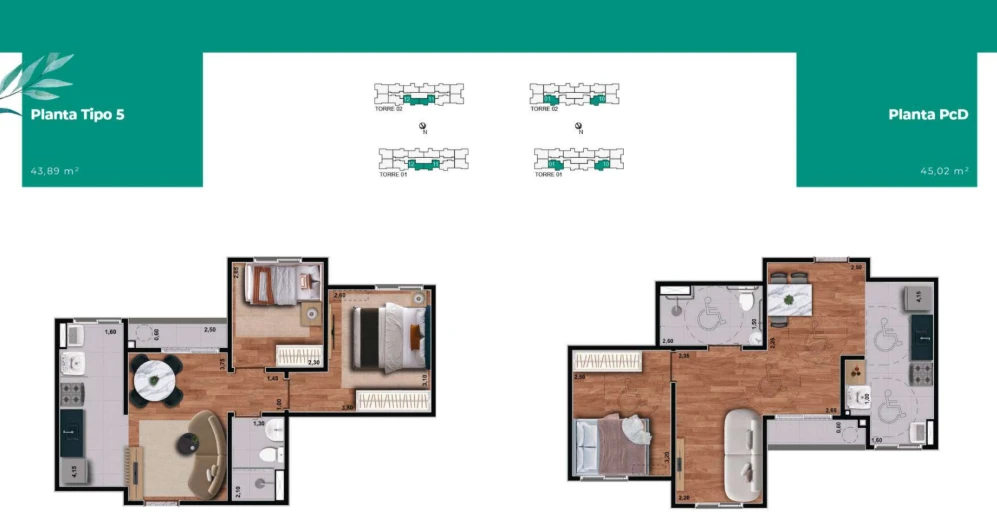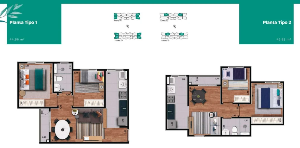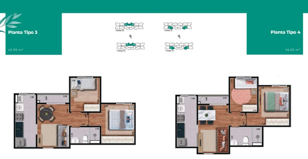 Aproveite o breve lançamento de apartamentos com 2 dormitórios, áreas de 42 a 45m², varanda e 1 vaga de garagem, pensados para o conforto da sua família e com um preço que cabe no seu bolso.